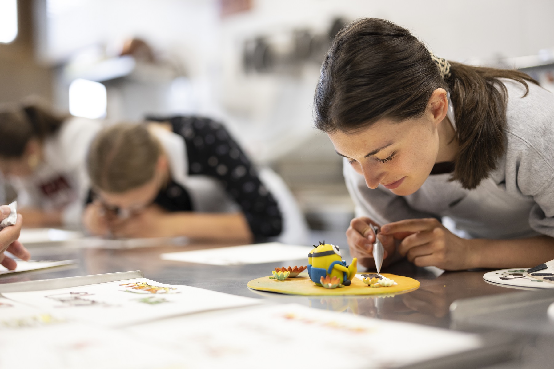 Zum Thema «Movie-Time» wurden von den sehr kreativen Lernenden herrliche Schaustücke aus essbaren Materialien (Couverture, Marzipan, Zucker und Teig) hergestellt.